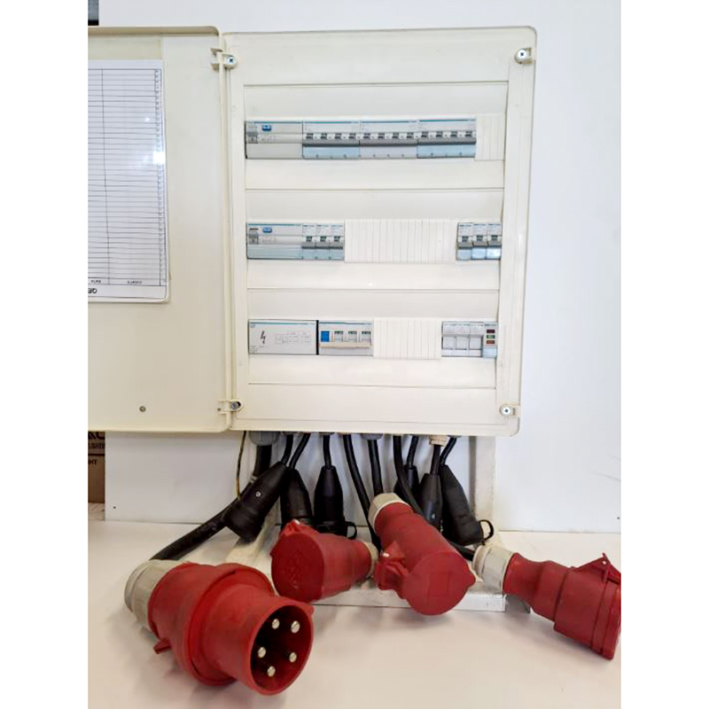 É disponibilizado a todos os expositores um cabo/puxada trifásico com potência até 10 KW com uma ligação por tomada trifásica de 32 Amperes tipo CEE 32A /5 pinos fêmea. Aplicado para um quadro eléctrico monofásico até 10A(2kw)